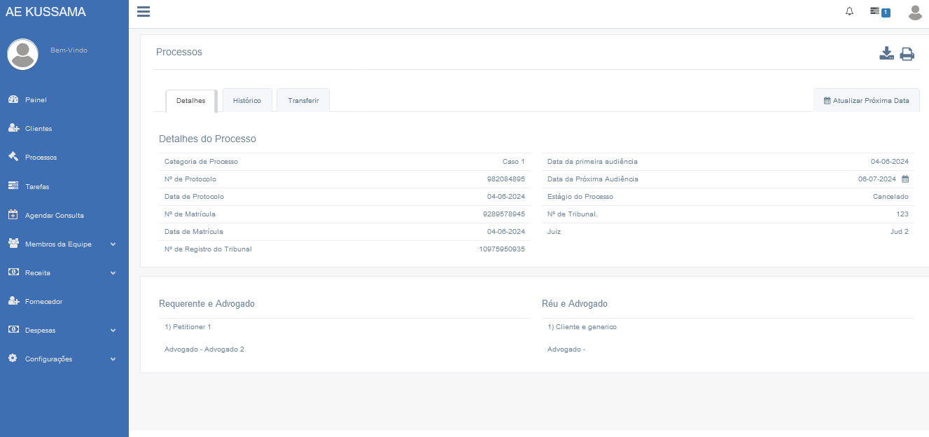 - Desenvolvemos um sistema para gestão de Escritório de advocacia